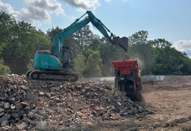 A standout feature of this project was our commitment to environmental sustainability through comprehensive on-site material processing. We deployed specialist crushing equipment directly to the Lister Cottages site, enabling us to: